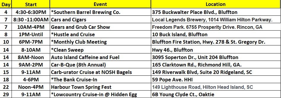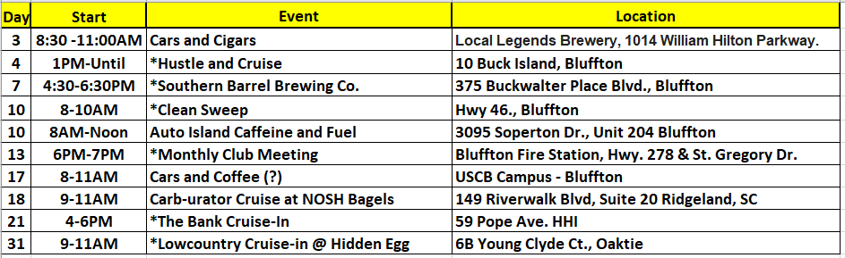Mission: The Carolina Dreamers Car Club (founded in 1993) is a non-profit organization formed to socialize and share experiences with other automotive enthusiasts. We encourage and welcome all types of vehicles: cars and trucks, domestic and import, stock and modified, from all years and generations. Special interest vehicle ownership is not a requirement, just the enjoyment of all things automotive. Proceeds from Club membership dues and fundraising activities are used to support local Low Country charities. The Club is recognized as tax exempt under IRS Code Section 501(c)(4).