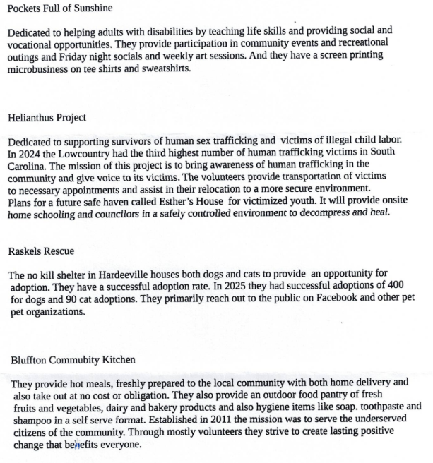Carolina Dreamers 2026 Charitable Giving Recipients